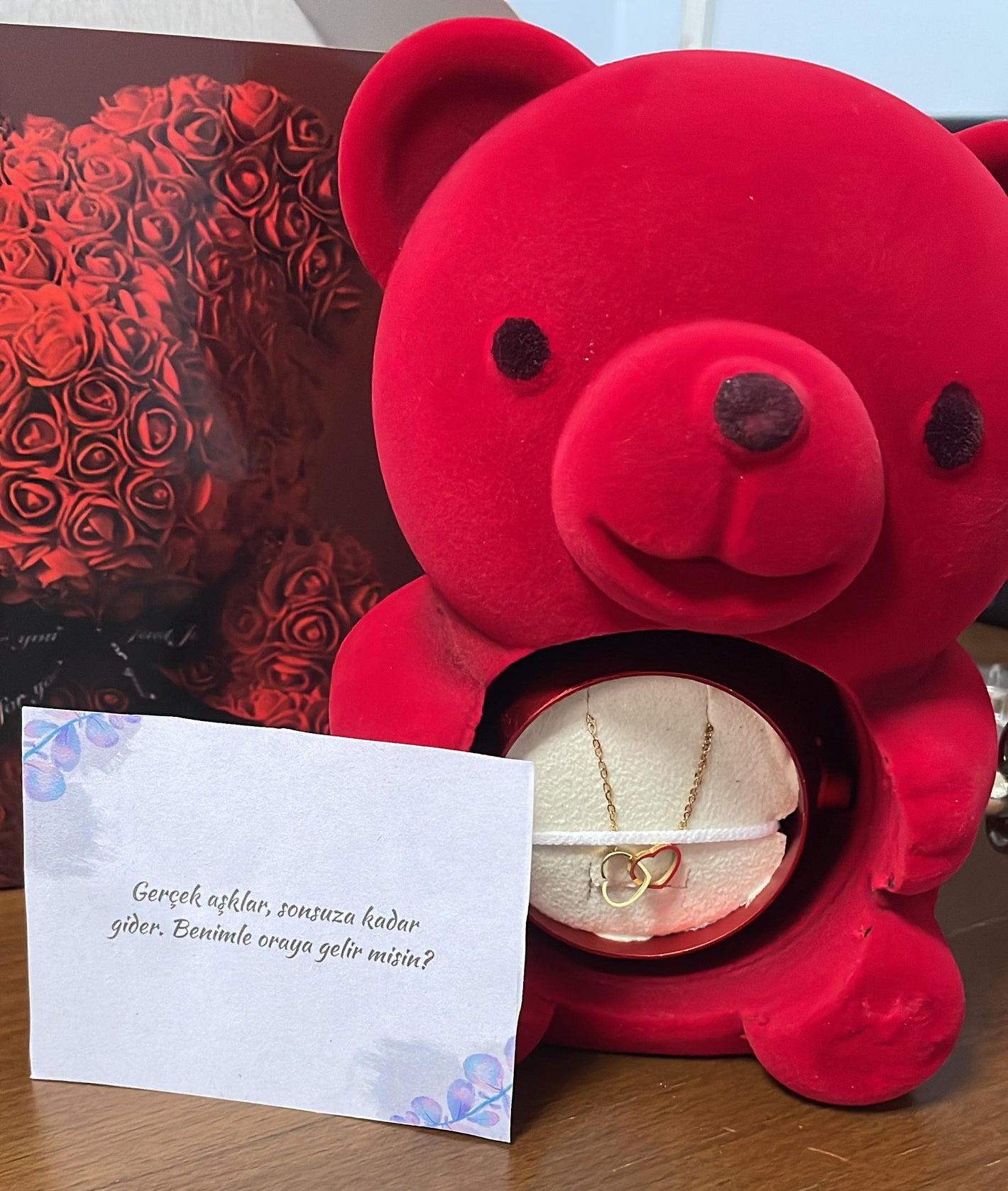 Sevgilinize hem şirin hem unutulmaz bir hediye! Ayıcığı çevirdiğinizde içinden çıkan gizli kolye 💍 ile anı ölümsüzleştirin. Kalpten gelen en zarif sürpriz ❤️